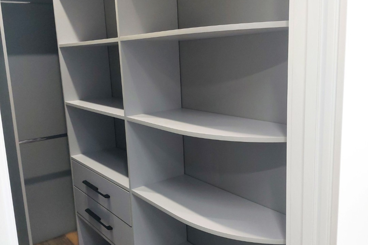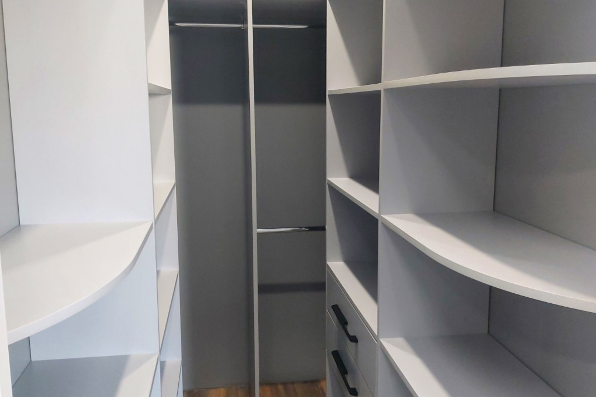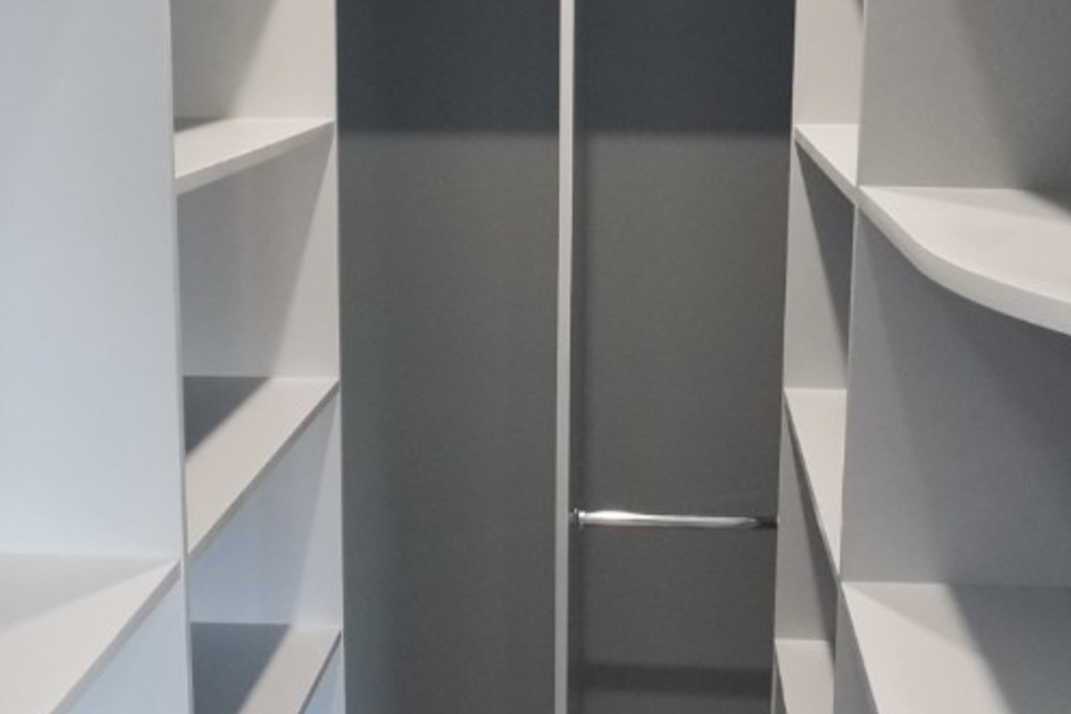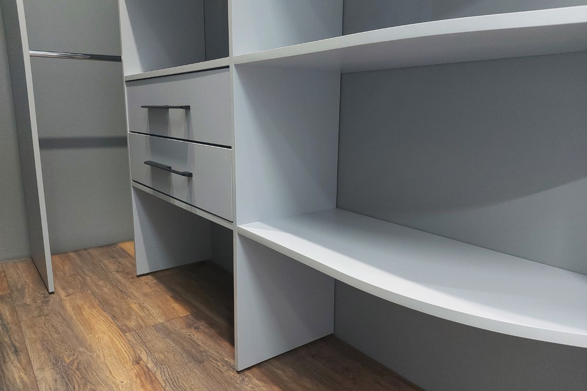 Найти необходимую вещь в гардеробной с открытыми стеллажами и штангами гораздо проще, чем рыться в зачастую темном шкафу с узкими полками;