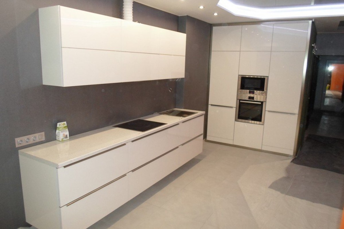 Акриловые кухонные фасады имеют многослойное строение. В качестве основы выступают древесные плиты, поверх которых клеится пластик. Покрытие бывает одно- и двухсторонним.