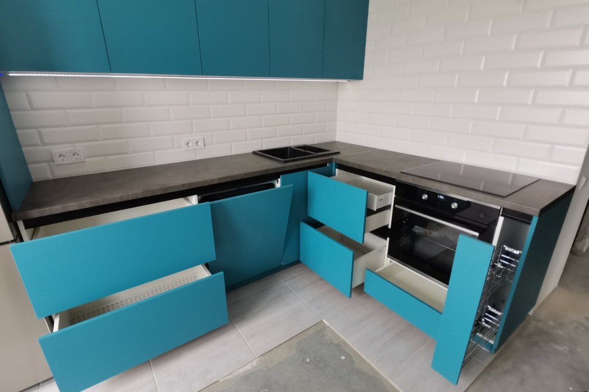 | Фурнитура | Петли Blum с доводчиком, петли Blum без доводчиков, направляющие Tandem Blum с доводчиком частичного выдвижения, карго FGV с доводчиком, |