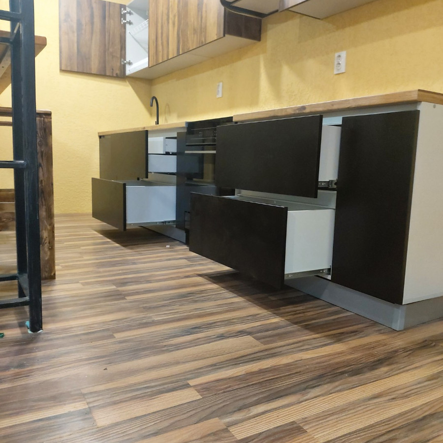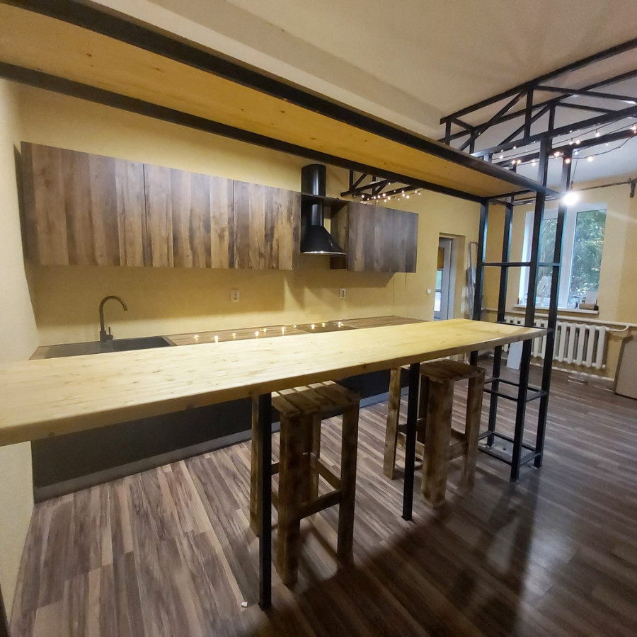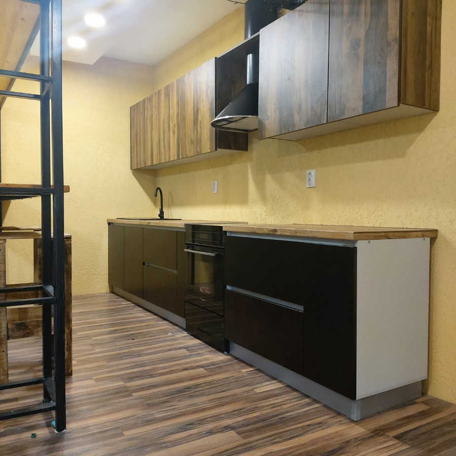 Кухня ЛДСП Egger с сочетанием стиля Лофт.