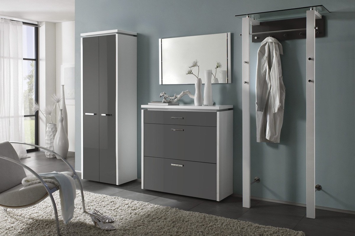 Прихожая в современном стиле предполагает хранение вещей и обуви в закрытых шкафчиках – на открытых полках и тумбочках расставлены лишь элементы декора.