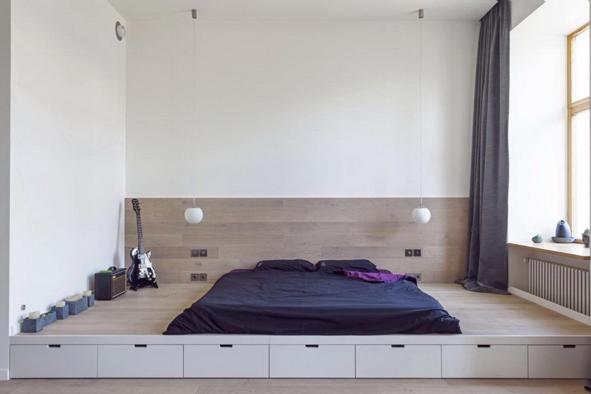 Подиум выполняет роль многофункциональной системы, в том числе для хранения вещей.