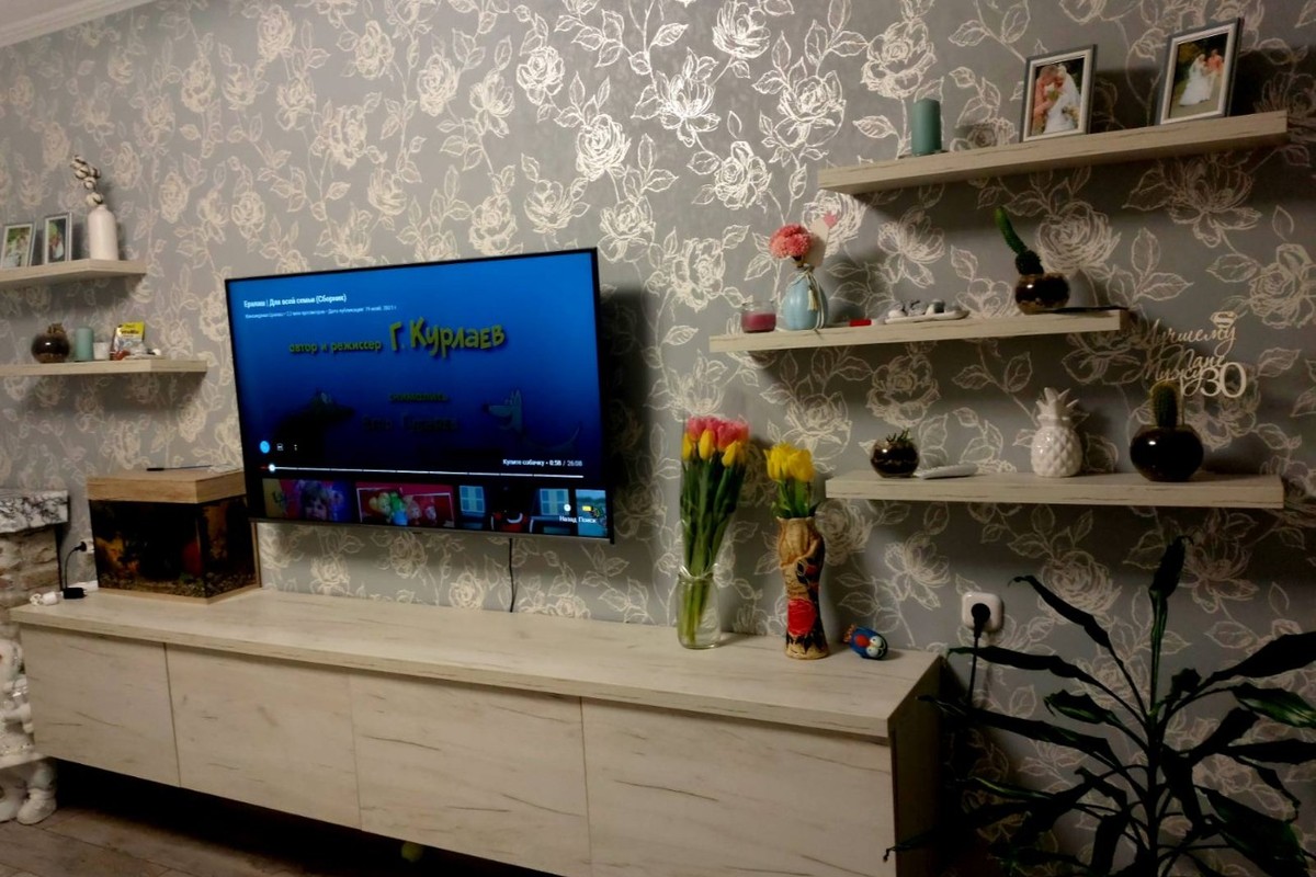 Часто подвесная тумбочка используется для установки телевизора.
