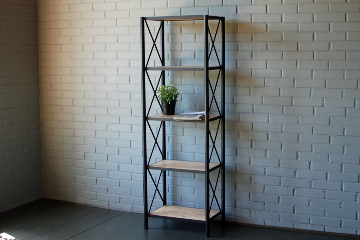 По конструкции стеллажи мало отличаются от собратьев, сделанных в других стилях.