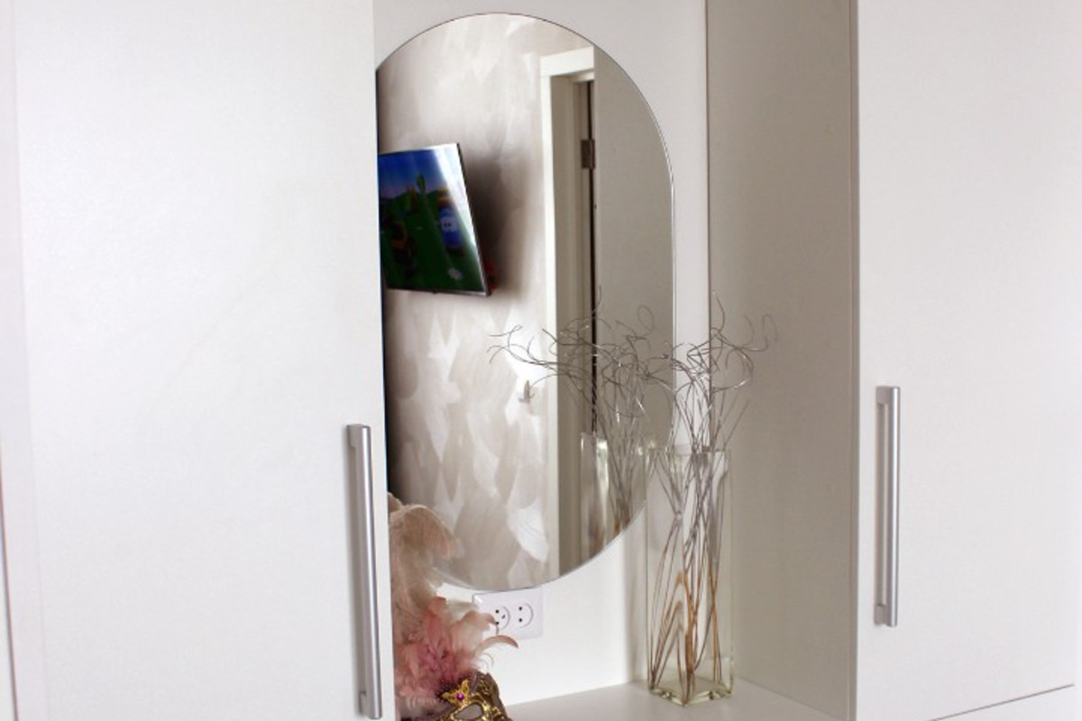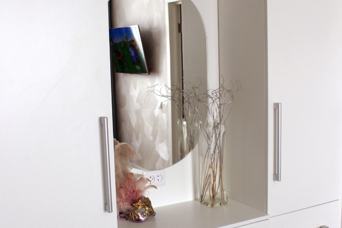 | Фасады | ЛДСП Белый 605 PE (Byspan), кромка ПВХ, зеркало "серебро" |