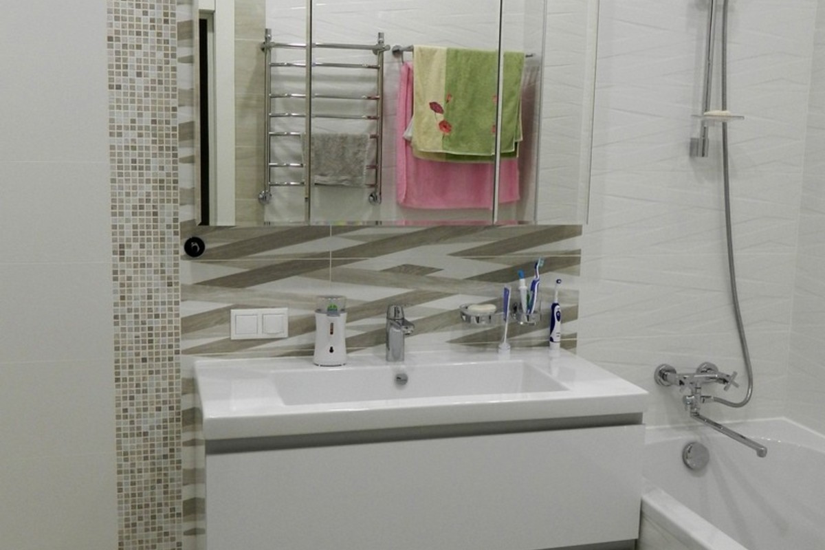 Установка функциональной подвесной тумбы под раковину поможет грамотно организовать пространство в ванной комнате.