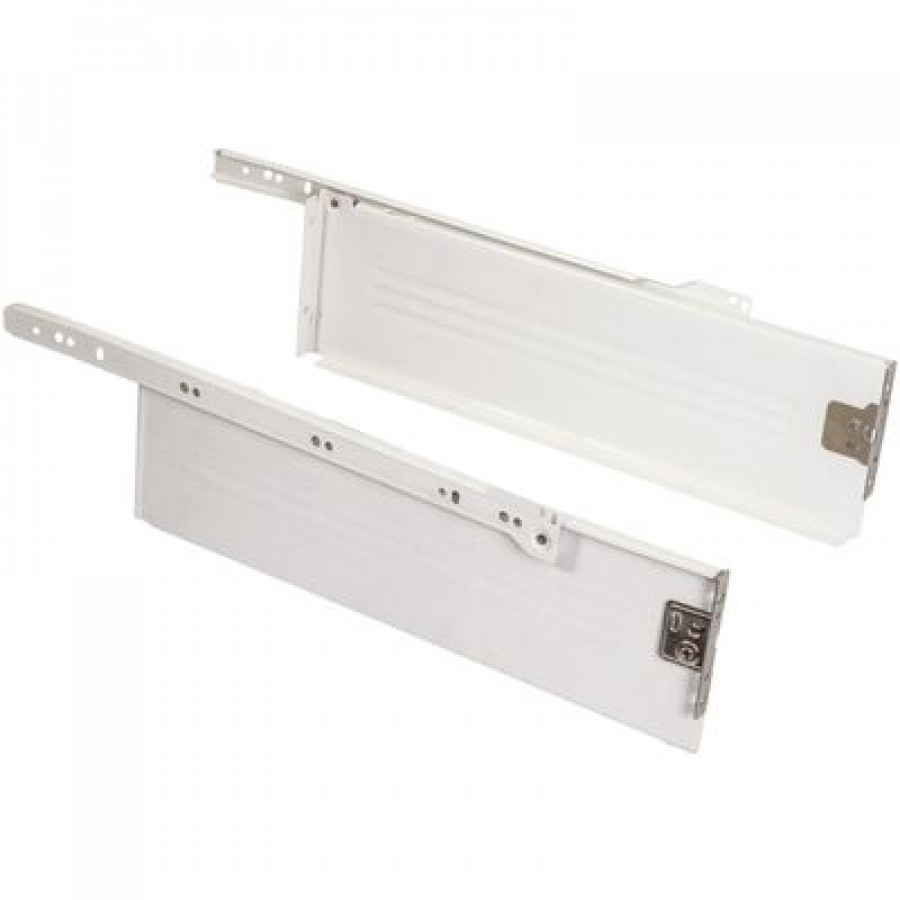 Цельнометаллический ящик, построен на базе роликовых направляющих. Имеет две металлические боковины в высотах 54 / 86 / 118 / 150. Имеет неполное выдвижение. Может дополнительно комплектоваться доводчиком. Нагрузка до 25 кг. Используется толщина 1 мм после покраски. Отсутствуют регулировки по плоскостям.