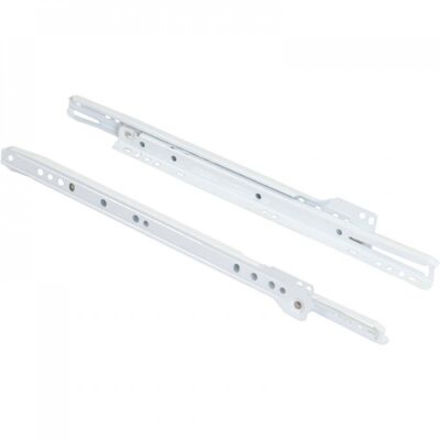 Направляющие роликовые изготовлены из холоднокатаной стали. В ассортименте толщины от 0,8 до 1 мм с учетом покраски. Допустимая нагрузка: 25 кг. Направляющие неполного выдвижения с двойным фиксатором в закрытом положении и защитой от выкатывания. Форма профиля имеет дополнительное ребро жесткости - желоб. Материал ролика - POM.